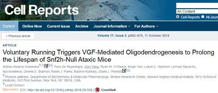 小编注意到,去年10月,发表在Cell Reports杂志上一篇题为“Voluntary Running Triggers VGF-Mediated Oligodendrogenesis to Prolong the Lifespan of Snf2h-Null Ataxic Mice”的论文证实,大脑损伤的小鼠通过跑步能够触发一种分子的产生。这一分子能够修复大脑组织,延长小鼠的寿命。
